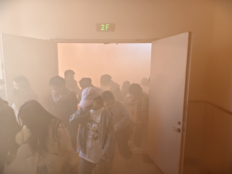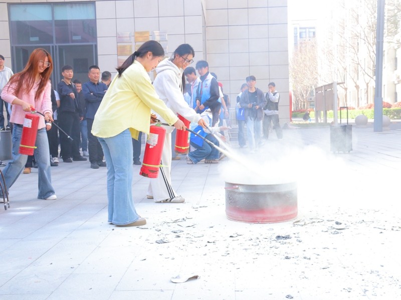 在消防疏散演习环节,师生在模拟烟雾中,沉浸式进行疏散逃生,掌握火灾突发时的应急处置流程,提升现场应变能力。随后,进行了灭火器和消火栓的实战灭火体验。通过理论与实操结合的方式,使师生熟练掌握应急避险和灭火救援技能。